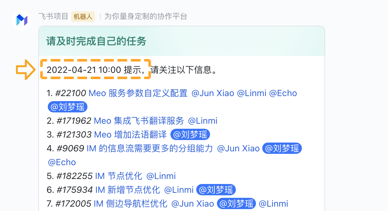通过自动化提醒,较少沟通成本。我们在一个新产品的整个生命周期中,沟通成本往往会很大,尤其是对于一些跨部门的信息同步上,那么通过工具,在一定的规则下,对延期需求/缺陷状态的流转进行提醒,对于问题的评论,直接同步到飞书中,就会极大的减少这些沟通成本,提高信息同步率。