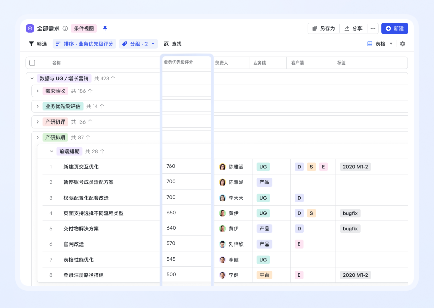 火山引擎通过设置"业务优先级评估"、"需求初评"、"需求排期"等环节实现了需求预期管理,有效规范需求评估秩序。