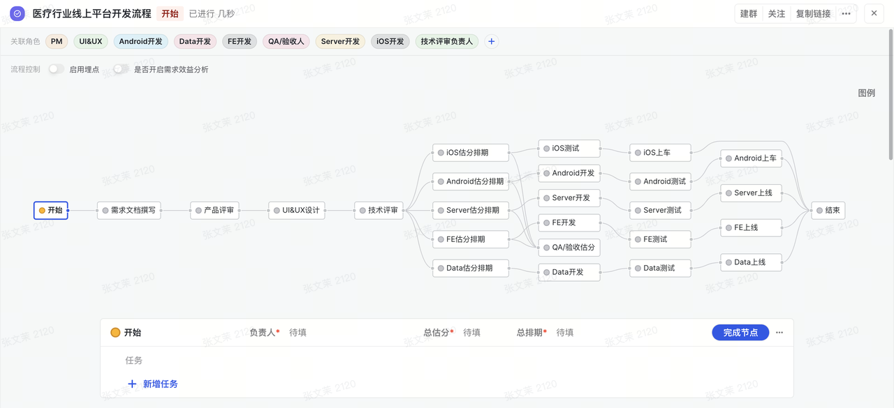 线上医疗系统的开发需要一套适配程度高、投入速度快的管理体系来紧跟医疗需求节奏;配合硬件开发同步进行时,开发时间计划难以把控对齐,对进度、问题、风险无法全方位监控,导致项目偏离目标。