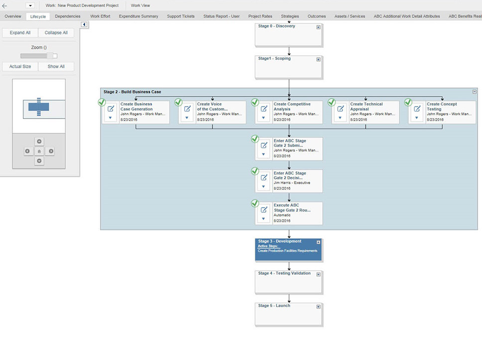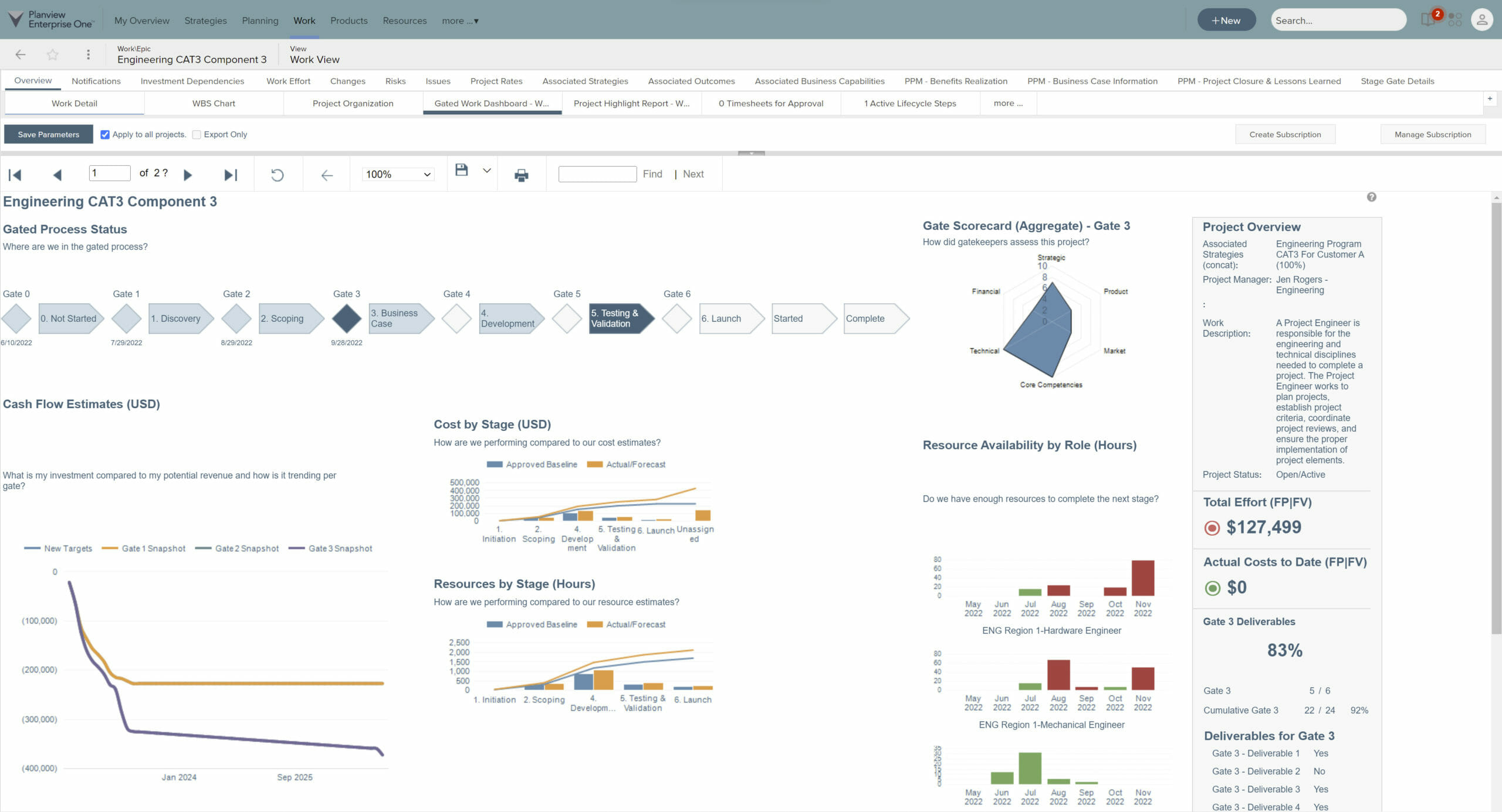 Planview强调通过 战略对齐(Strategic Alignment) 和 投资组合管理(Portfolio Management),确保企业在产品规划阶段就明确市场方向、资源分配与业务目标。同时,系统内置 阶段门(Stage-Gate)管理机制,天然支持 IPD 流程的多阶段评审与阶段性决策。
