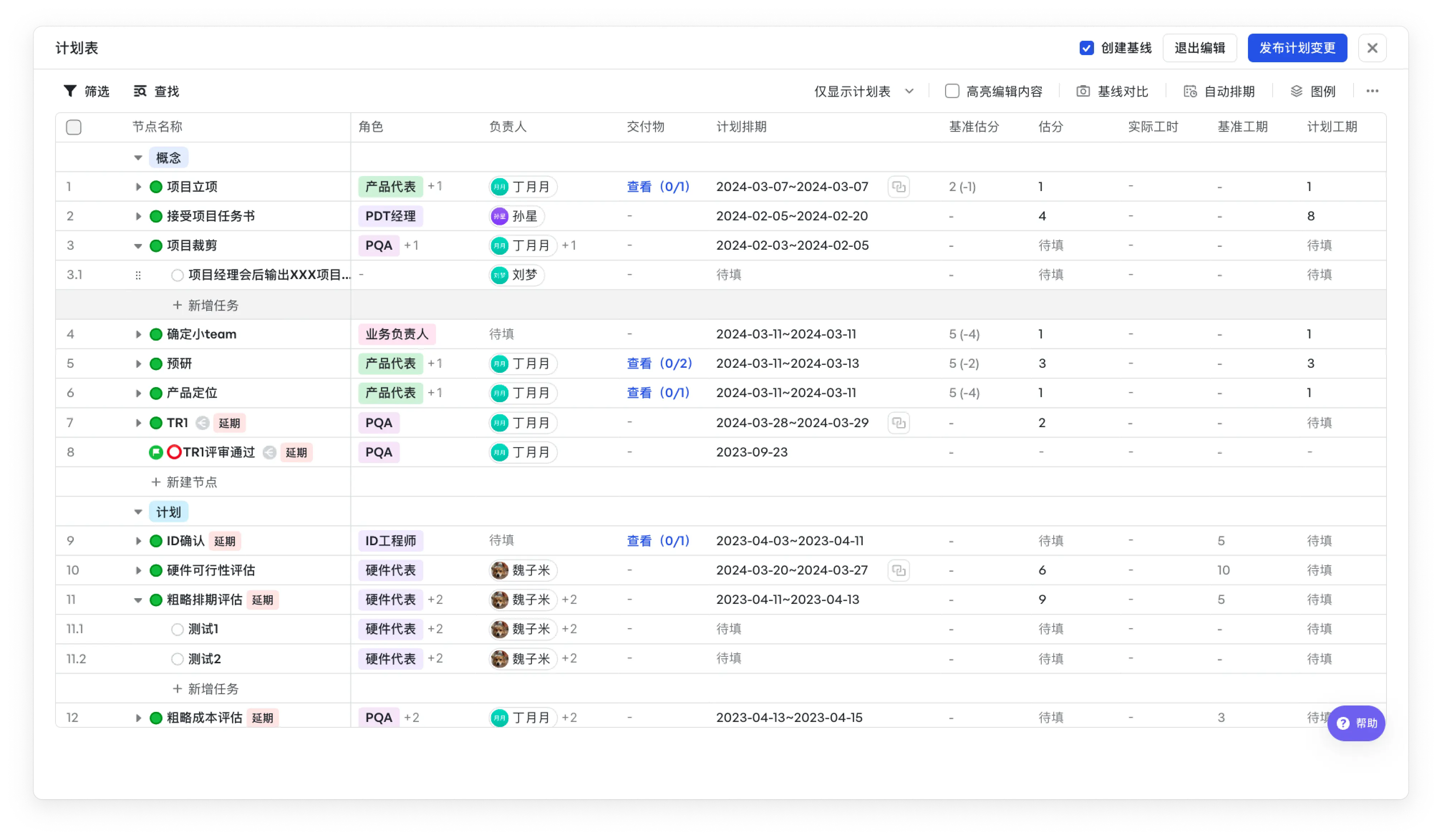 支持按 IPD 战略层、项目集层、项目层构建多层级计划体系,可细化至任务级别的进度管控,通过关键路径法(CPM)自动识别影响 IPD 里程碑的关键任务,当任务延期时实时预警并提供调整方案。