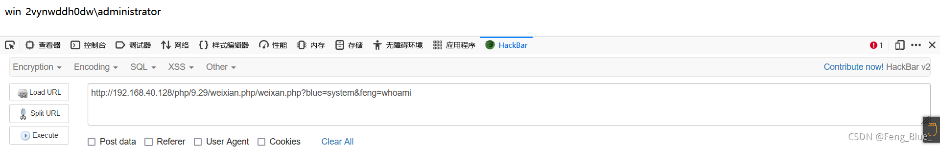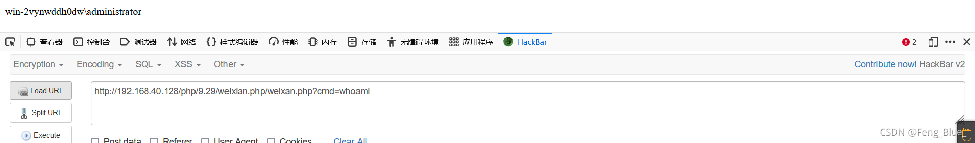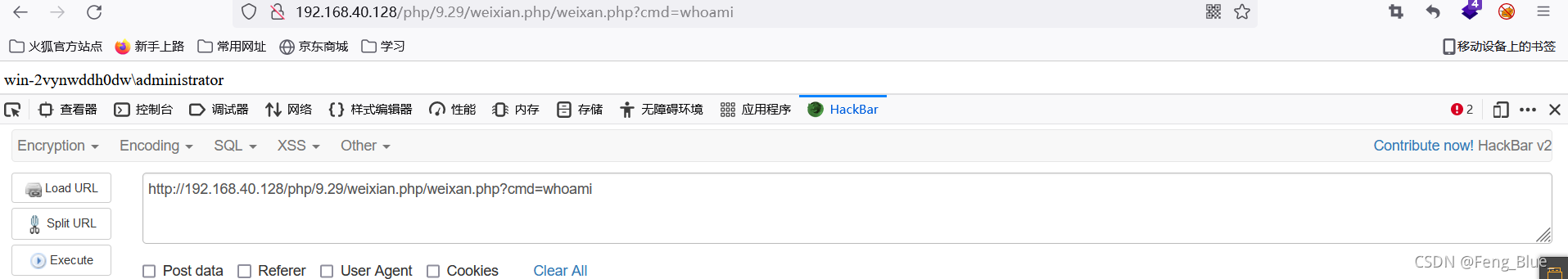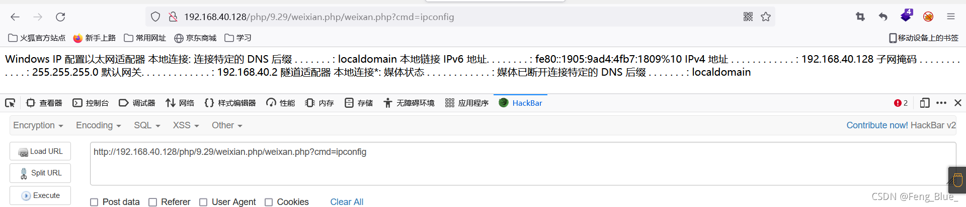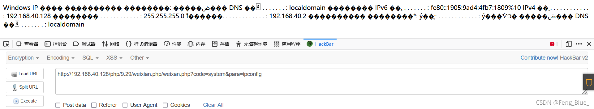 在网页中通过hackbar来操作,是可以执行系统命令,如下图