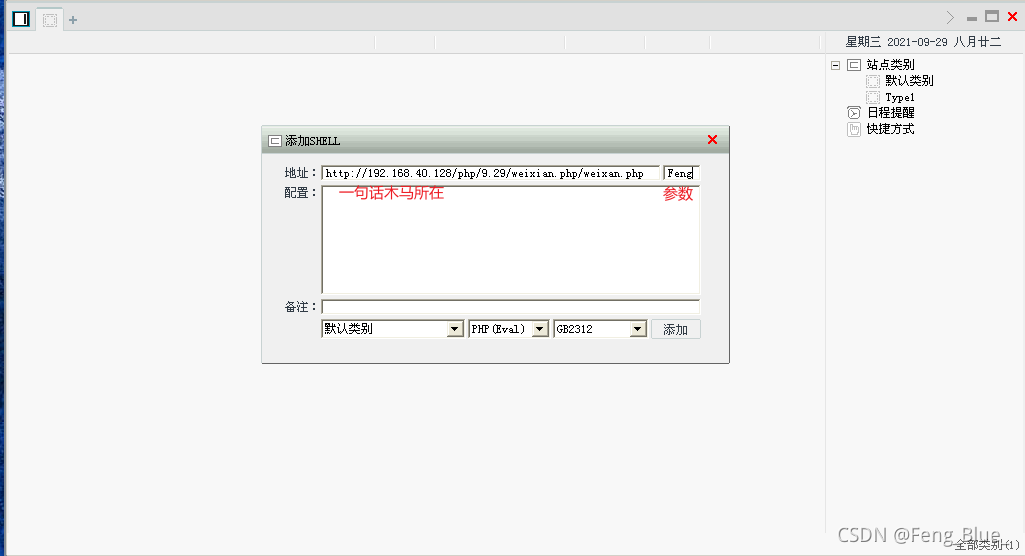 eval会将符合php语法规范字符串当作php代码执行,能够实现简单的一句话木马,列如: