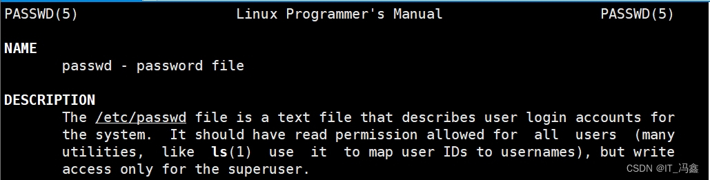 (1)如果要查看passwd作为密码文件的解释,可以man命令。