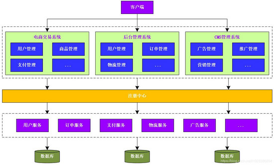 在分布式架构下,当部署的服务越来越多,重复的代码就会越来越多,对于容量的评估,小服务资源的浪费等问题比较严重。此时,我们就需要增加一个统一的调度中心来对集群进行实时管理。此时,系统就会演变为SOA(面向服务)的架构。