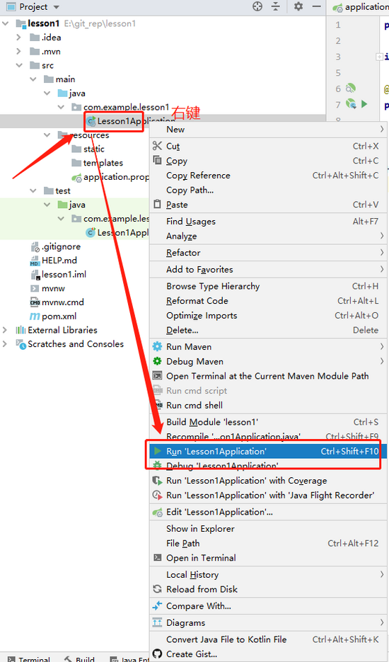 我们在 Lesson1Application.java 中添加如下代码: