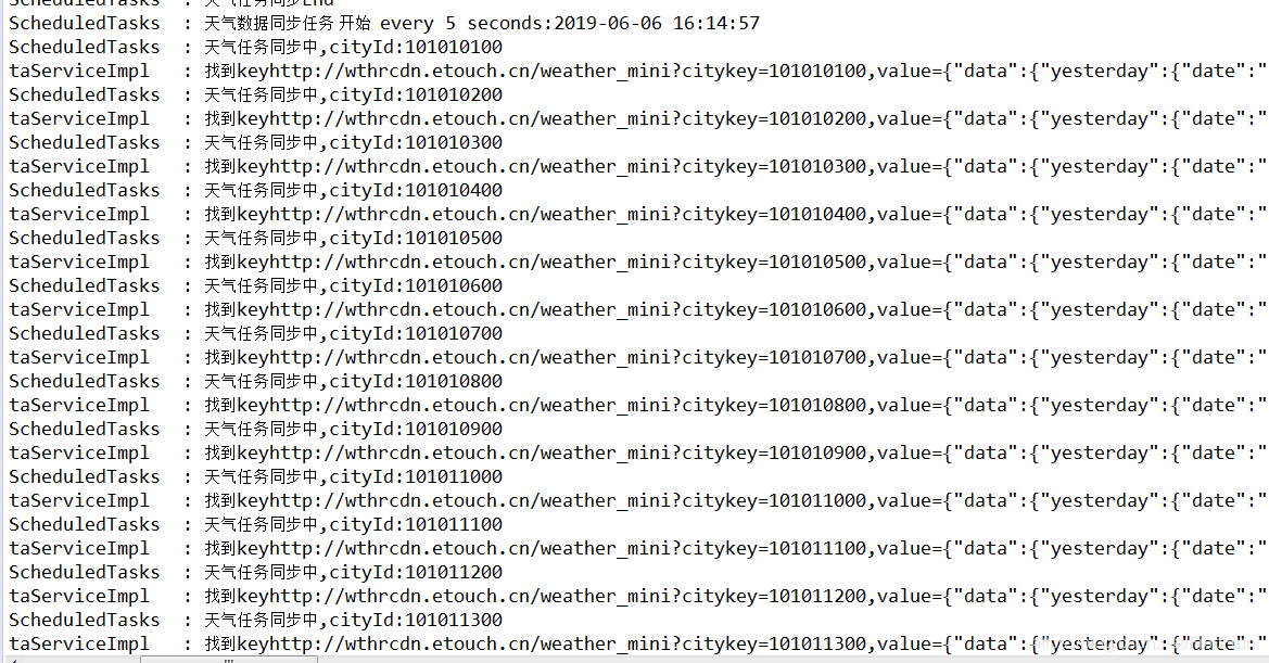 logger.info("天气数据同步任务 开始 every 5 seconds:{}", formate.format(new Date()) );
