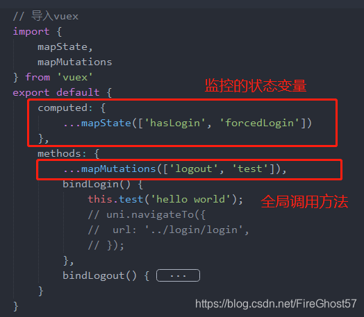 你可以理解为...mapMutations[xxx]意思是将store中的[]内操作方法引用到了当前页面的methods:{}内,因此用this.test('hello world');就可以在当前页面调用store中的赋值函数