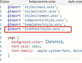 5.将fontawesome.wxss移动到小程序合适的位置,且在同级文件夹新建style.wxss样式引用,并添加如下内容:
