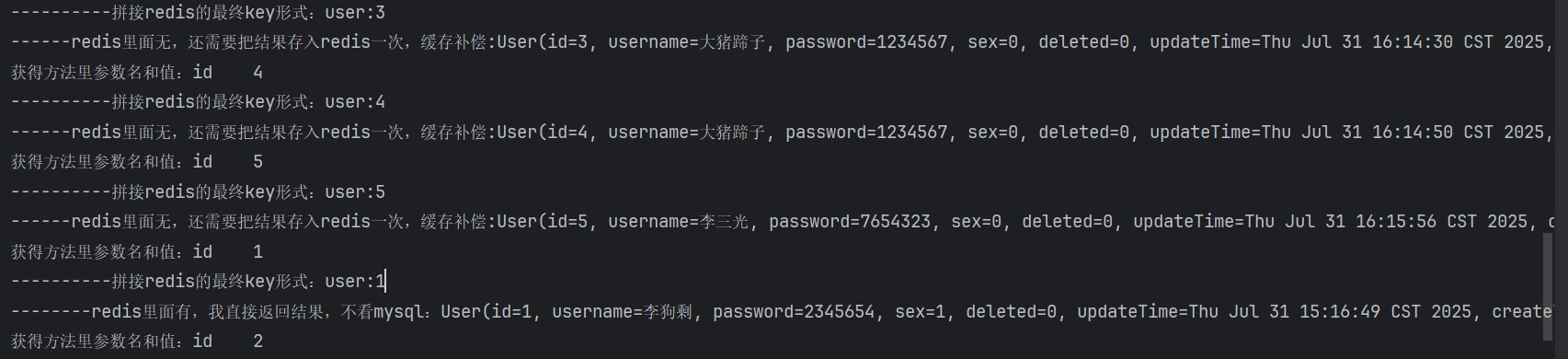 // 2. 脱敏返回值:方法带@NoLogAnnotation,不打印返回值(避免User的password泄露)