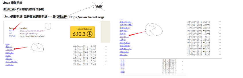 Liunx是由部分汇编语言 + c语言编写的操作系统,是一个开源的操作系统,但是开源并不意味着免费。The Linux Kernel Archives kernel 官网。
