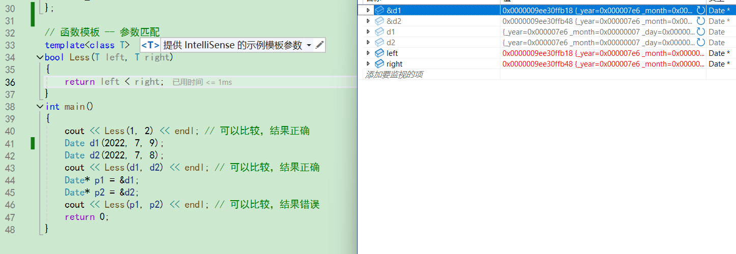 cout << Less(1, 2) << endl; // 可以比较,结果正确