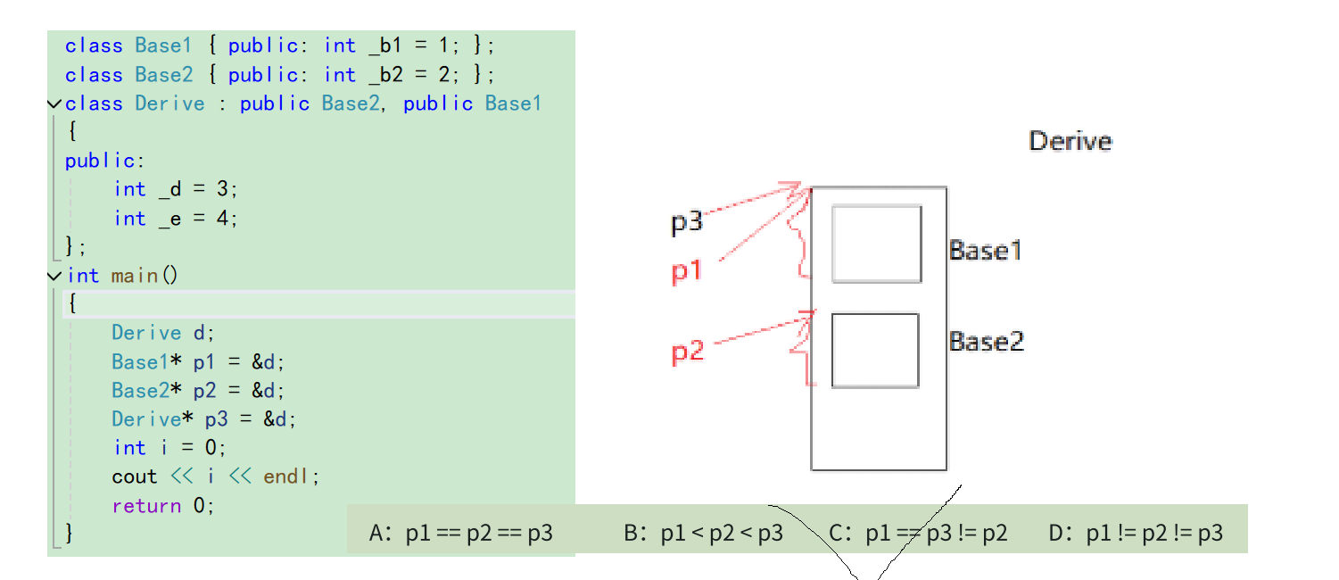 2.多继承:⼀个子类有两个或以上继承父类时称这个继承关系为多继承,多继承对象在内存中的模型是,先继承的父类在前⾯,后⾯继承的父类在后⾯,子类成员在放到最后⾯。
