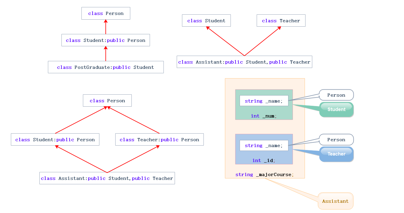 // 使⽤虚继承,可以解决数据冗余和⼆义性