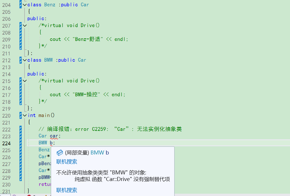 子类必须对父类的虚函数完成重写(覆盖)