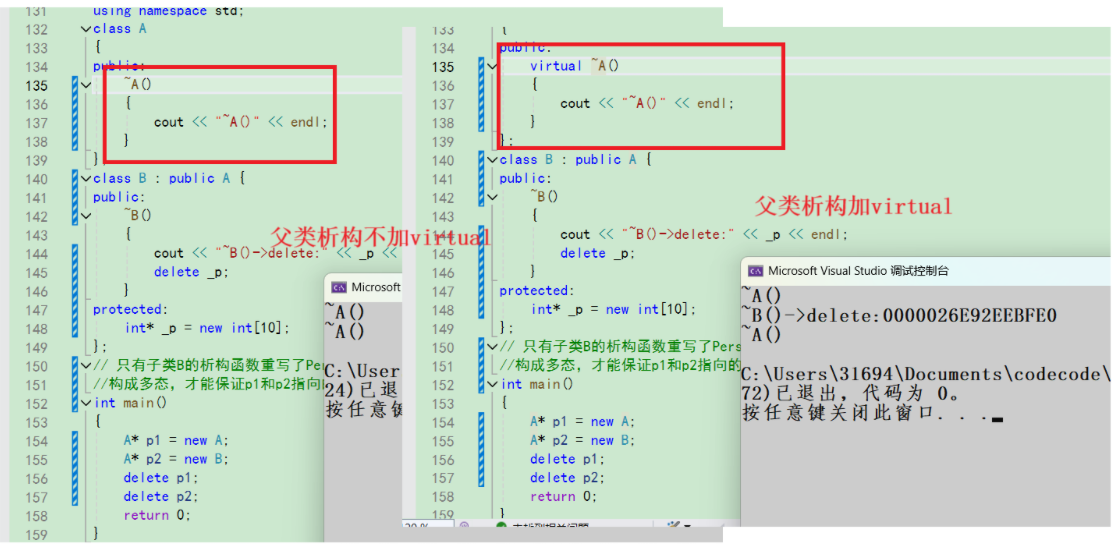 (即子类虚函数与父类虚函数的返回值类型、函数名字、参数列表完全相同),称子类的虚函数重写了父类的虚函数。