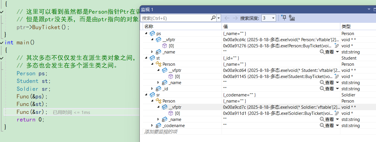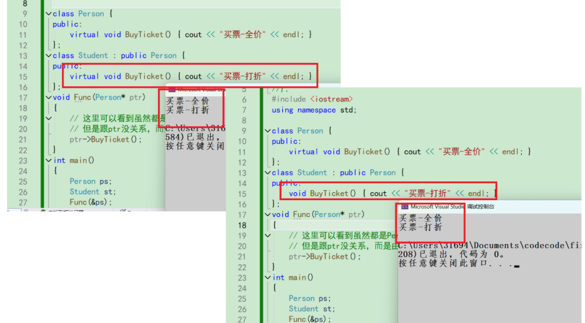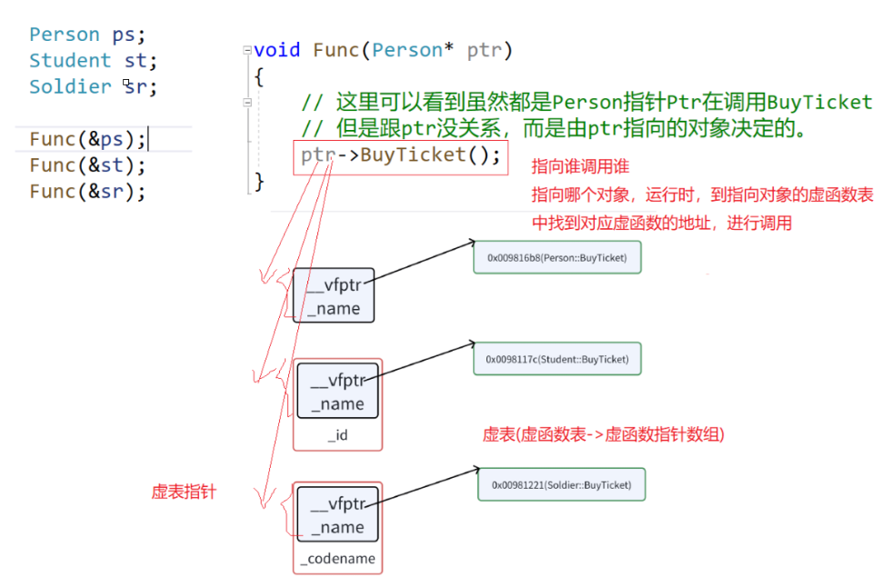 // 这⾥可以看到虽然都是Person指针Ptr在调⽤BuyTicket