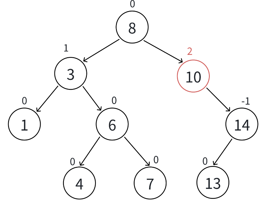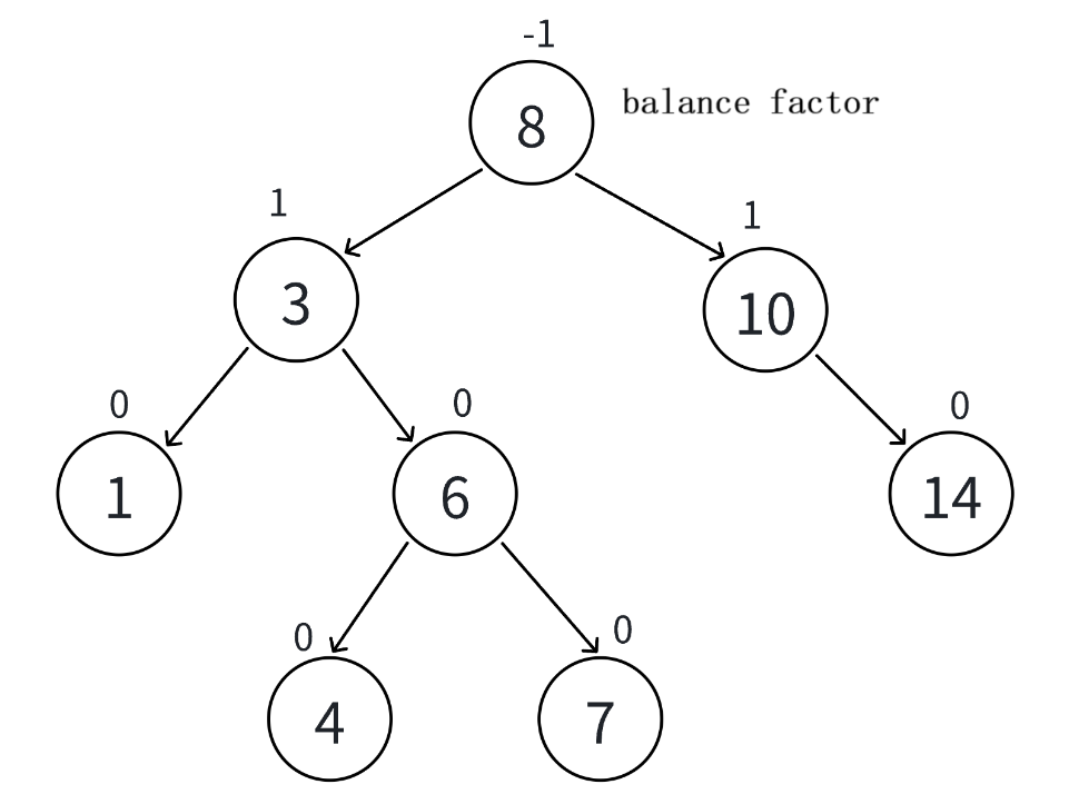 • 平衡因⼦ = 右⼦树⾼度-左⼦树⾼度。