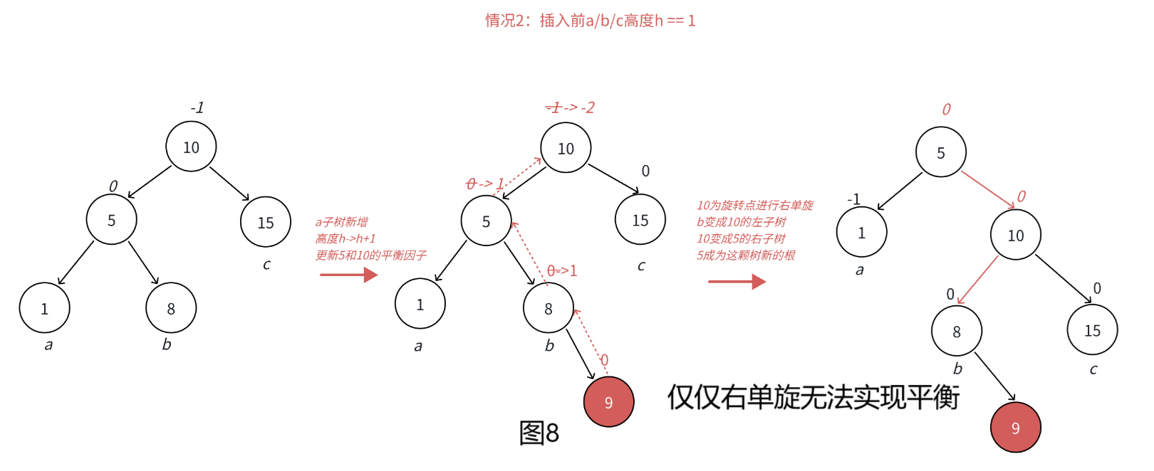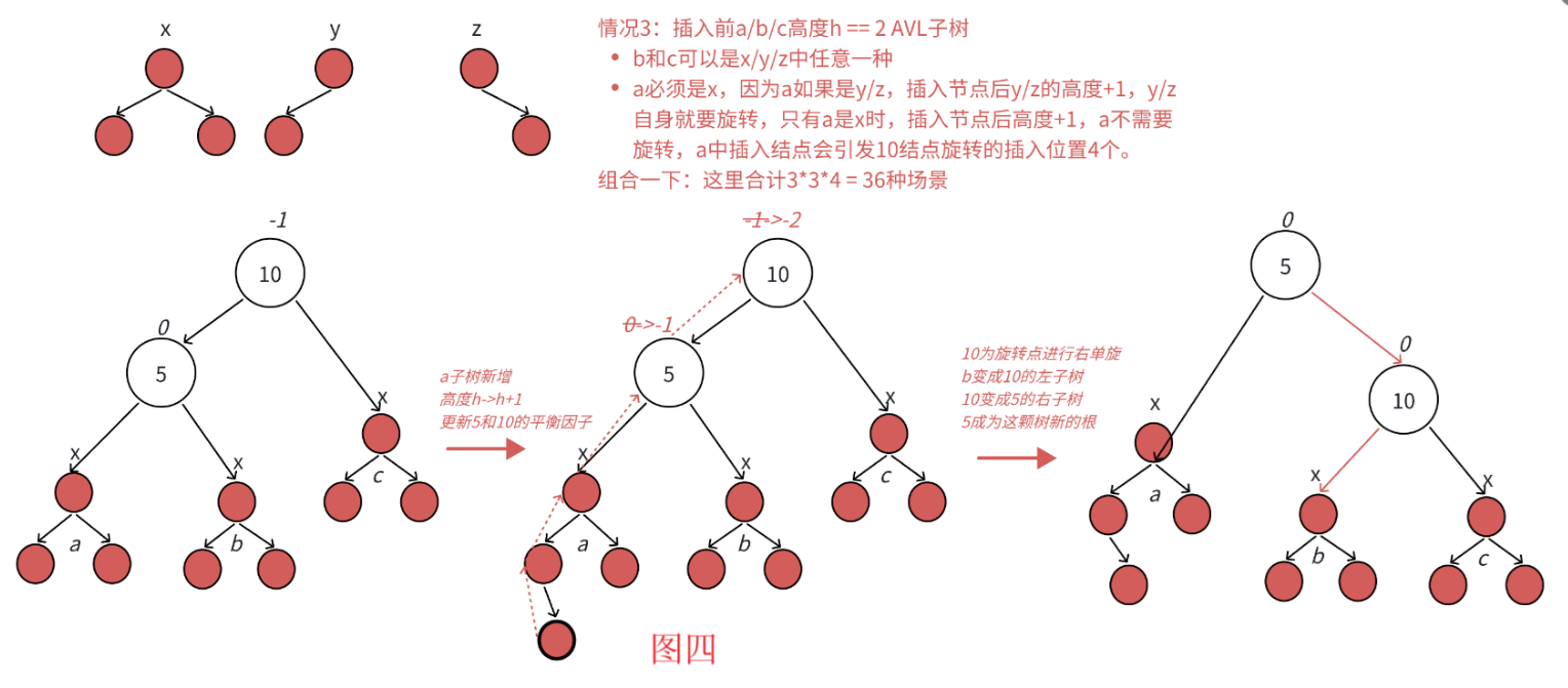 •图1展⽰的是10为根的树,有a/b/c抽象为三棵⾼度为h的⼦树(h>=0),a/b/c均符合AVL树的要