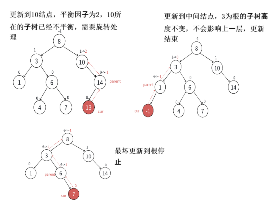 • 更新后parent的平衡因⼦等于0,更新中parent的平衡因⼦变化为-1->0 或者 1->0,说明更新前