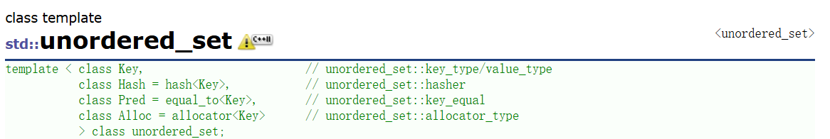 • unordered_set的声明如下,Key就是unordered_set底层关键字的类型。