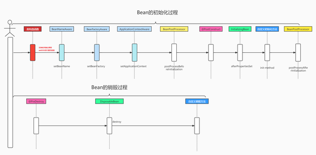 // bean实例化的后置处理,比如beanpostprocessor init-method等