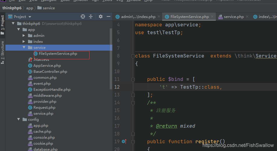 面就来一个简单易懂的例子来展示thinkphp6 的容器和服务的配合应用。