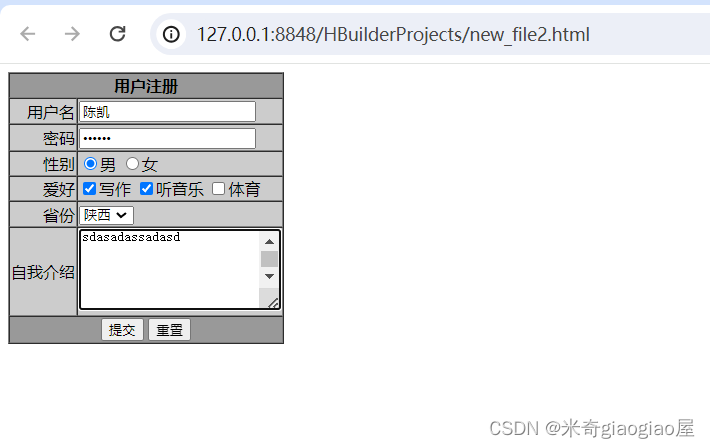 <input type="checkbox" name="爱好">写作