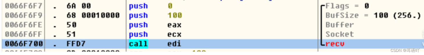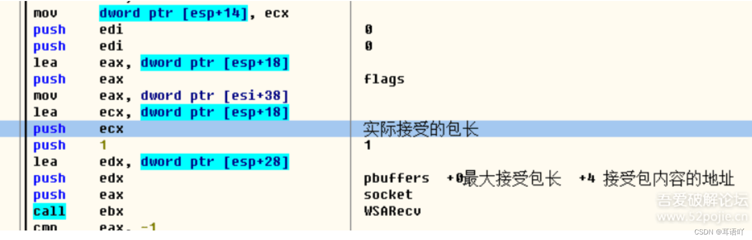 recv 的实际包长 在返回值eax