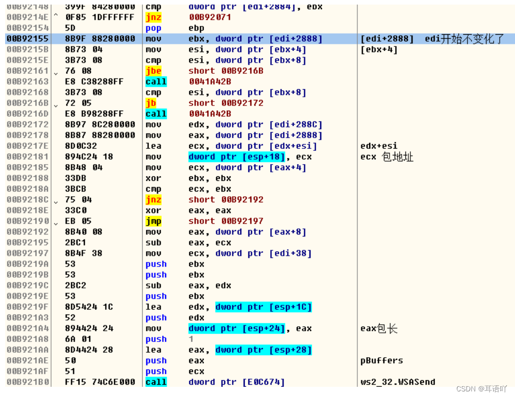 edi+2888 开始不发生变化了