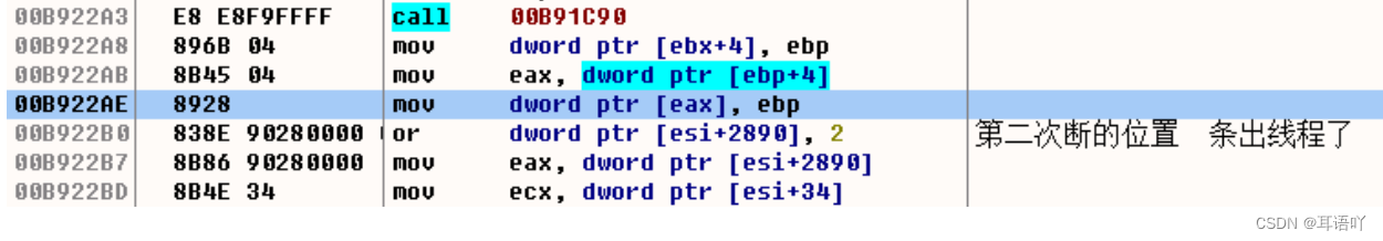 找到写入来源以后 我们看是否跳出了线程