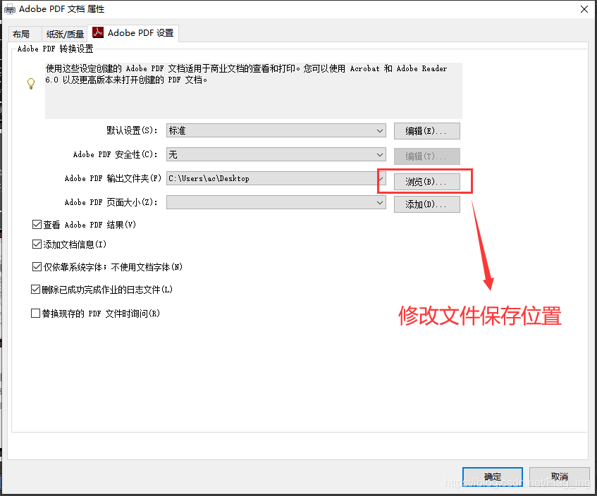 然后修改文件的保存位置,其他的配置按需修改,点击确认,即可保存相应的pdf文件。
