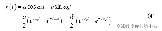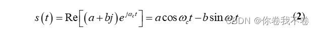 我们对上变频之后的信号取实部即得到 IQ 调制后的信号,如式(2)。