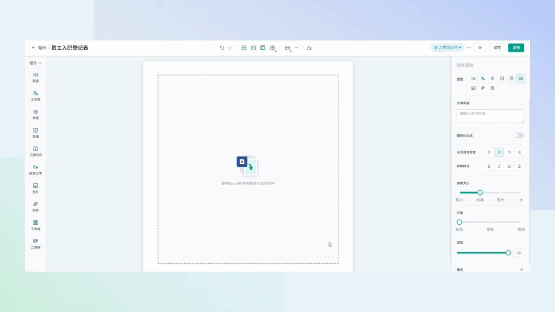 FlashTable 支持直接导入 Word/Excel 模板,通过解析文档结构(包括样式、公式、布局),精准复现用户熟悉的操作界面 。开发时,只需简单导入模板,即可生成贴合用户习惯的交互表单,消除用户学习成本,从源头降低项目推广阻力。