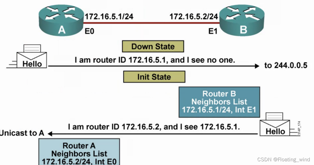 (条件匹配)匹配成功,则可以进入到下一个状态,如果失败,则将停留在邻居关系,仅使用Hello包进行周期保活。