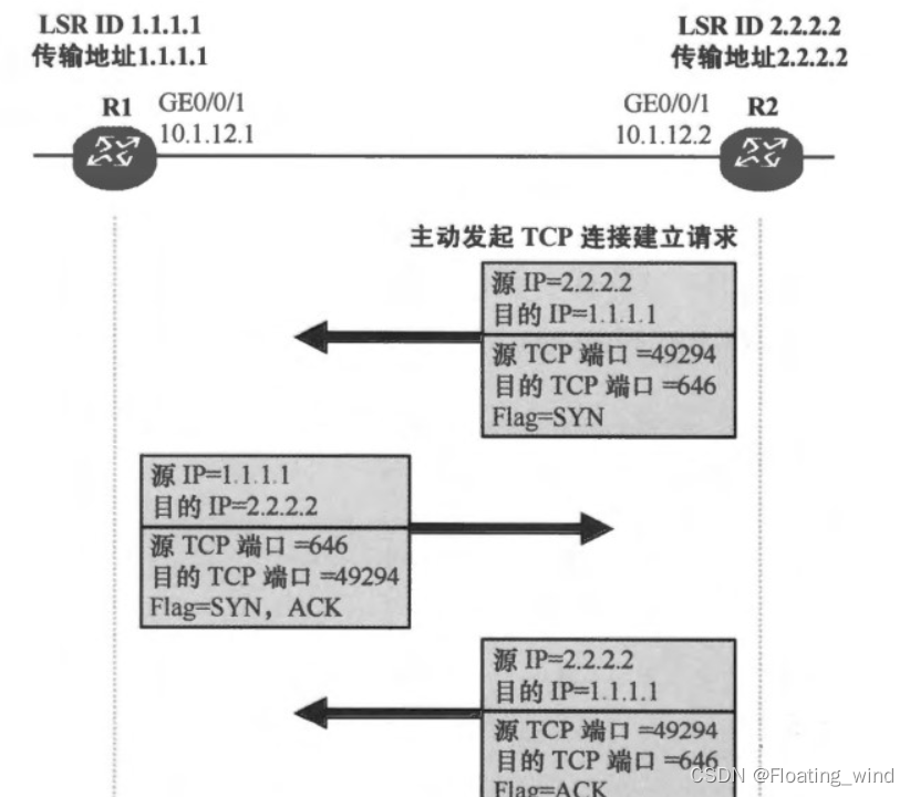 在建立TCP会话之间,LDP也存在检查动作,需要先确认收到的传输地