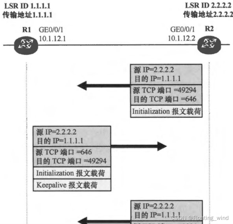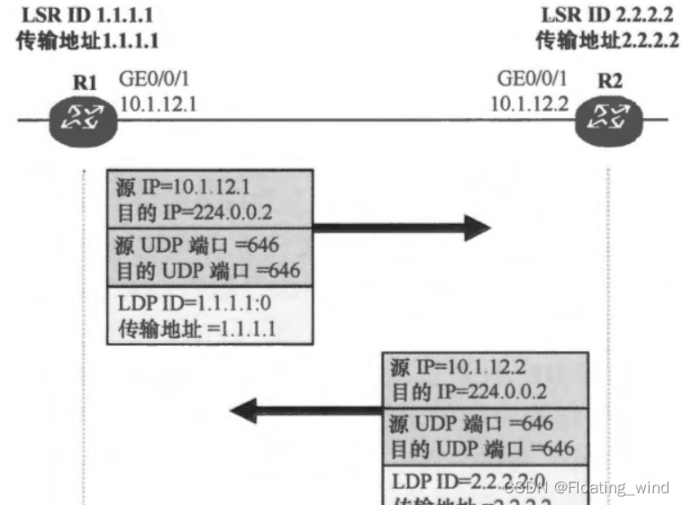 1,在LSR上激活LDP之后,首先周期性的发送hello包来完成对等体的发现工