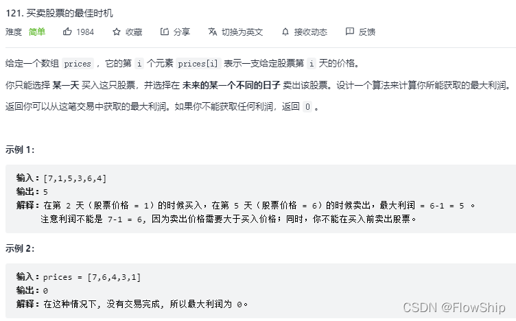 //每一天的利润最大化 = 今天的价格 - 最小买入价格 或者 昨天的利润最大化
