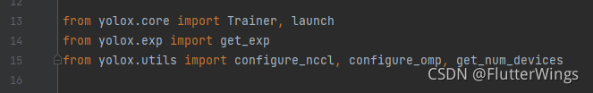 打开D:\pythonProject\YOLOX 下的D:\pythonProject\YOLOX\tools\train.py,注意14行得有