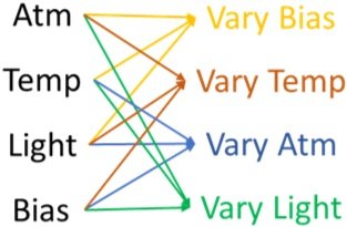 Figure 2: Parameter combinations (left) to understand the effect of individual stress factors (right).