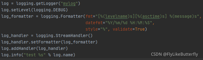 创建方式为logging.Formatter(fmt=None, datefmt=None, style='%', validate=True)