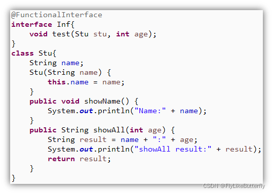 可以看到函数式接口里的抽象方法是有两个参数的,第一个参数是要执行方法(给接口赋值时指定的方法)的实例对象,第二个参数是要执行方法的参数;