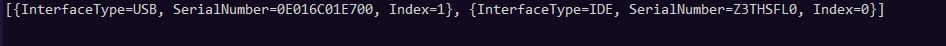 Process process =Runtime.getRuntime().exec(new String[]{"wmic","diskdrive","get","Index,InterfaceType,SerialNumber"});