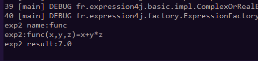 Expression exp2 = ExpressionFactory.createExpression("func(x,y,z)=x+y*z");