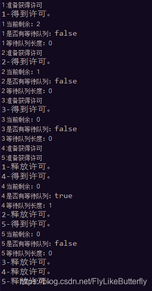 // semaphore.acquire(permits);//获得指定个数的许可(InterruptedException)