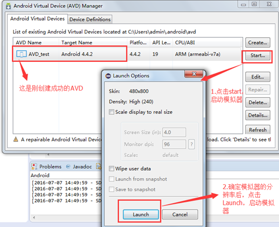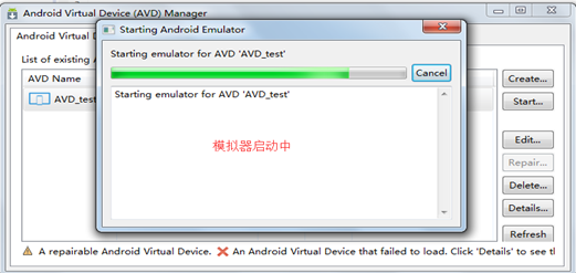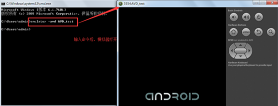 打开cmd,输入命令emulator -avd AVD_test(这是刚创建的模拟器的名称),即可启动。