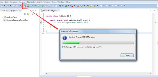 在安装ADT插件完成之后,在eclipse的菜单界面会多一个ADT的管理器,如下图,点击进入到安卓API安装界面。
