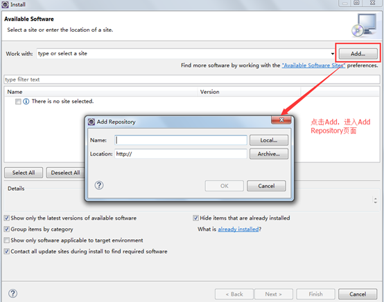在Install页面,点击Add按钮,进入Add Repository页面。