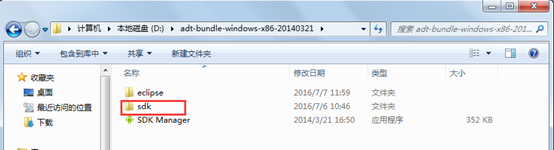 3.Android SDK下载。官网:http://developer.android.com/sdk/index.html,下载adt-bundle-windows-x86-20140321.zip,解压后如下图。